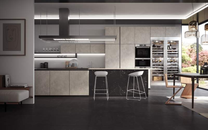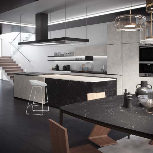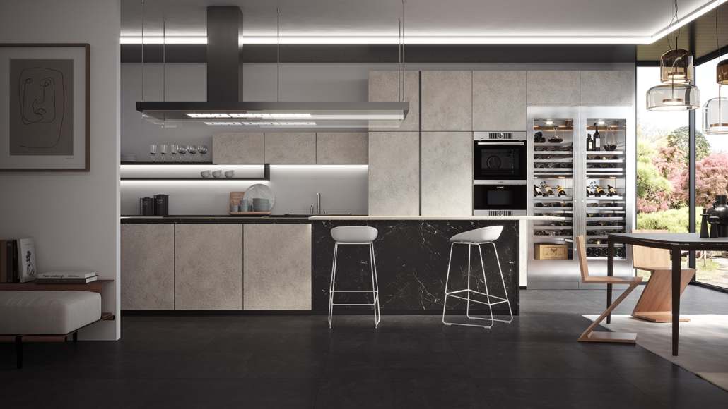 Beauty in nature is achieved in a perfect combination of refined and raw material. Reflecting this balance, the union between two surfaces of different appearance and tactility animate the elegance of a kitchen made of contrasts.